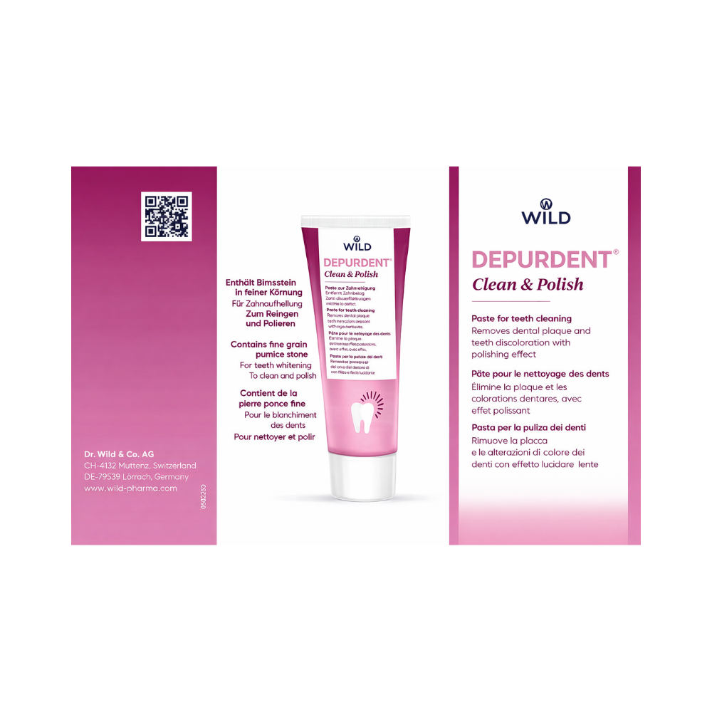 Depurdent Clean & Polish Toothpaste is specially formulated to provide intensive cleaning and polishing for teeth. Its unique polishing action helps remove stubborn plaque and surface stains caused by coffee, tea, smoking, and food, leaving teeth visibly cleaner and smoother. Regular use supports better oral hygiene and helps maintain a fresh, healthy smile.