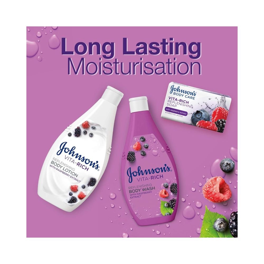 Johnson’s Body Lotion – Vita-Rich Replenishing Raspberry Extract 400ml is designed to help restore moisture and support soft, smooth, supple skin with regular use. Enriched with raspberry extract, rich in natural antioxidants, this body lotion helps nourish dry skin while leaving a refreshing, subtle fragrance.