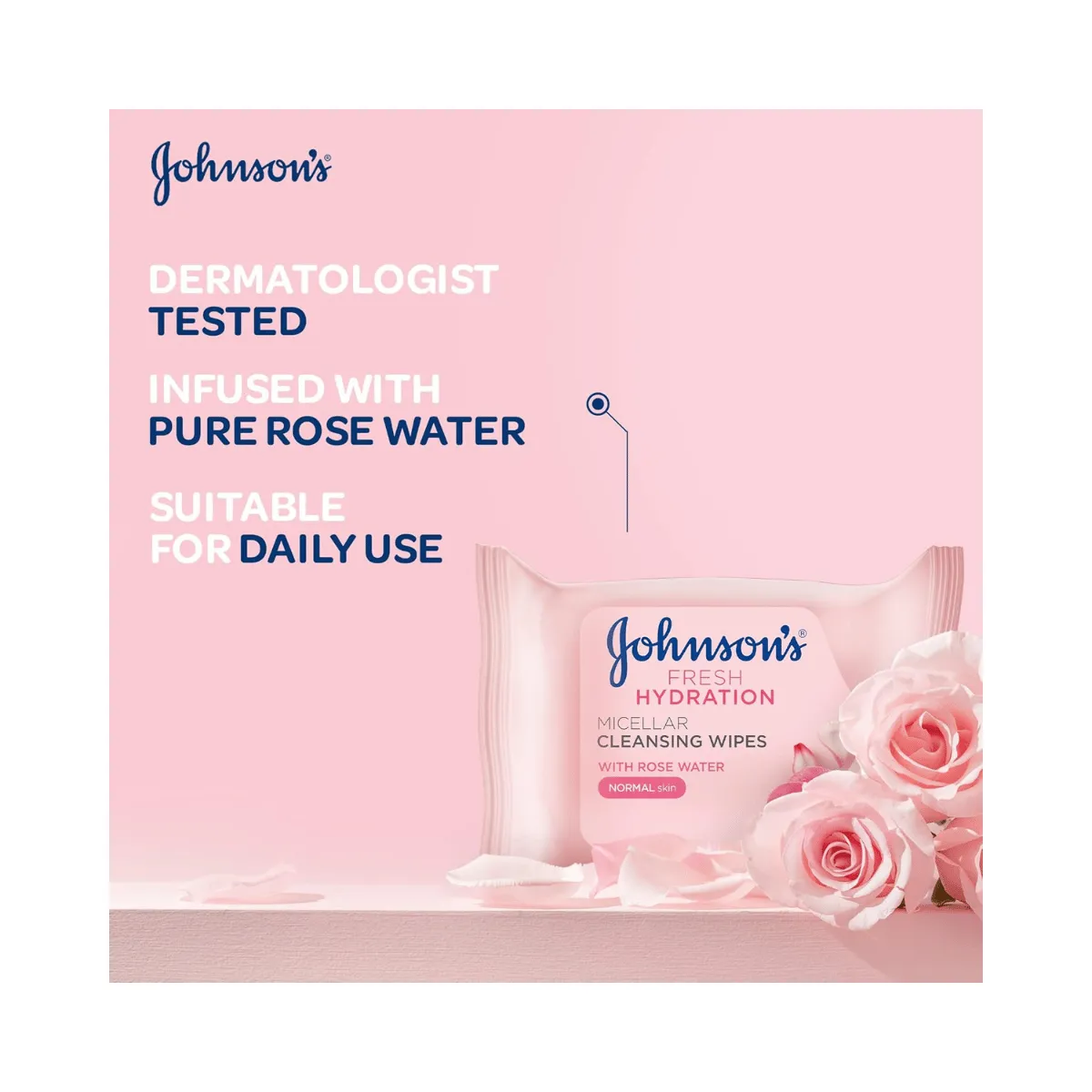 Johnson’s Fresh Hydration Ultra-Soft Micellar Cleansing Makeup Remover Wipes are designed to effectively cleanse and refresh normal skin without over-drying. Powered by micellar technology, these wipes attract and lift away makeup, oil, and impurities in one easy step — no rinsing required.