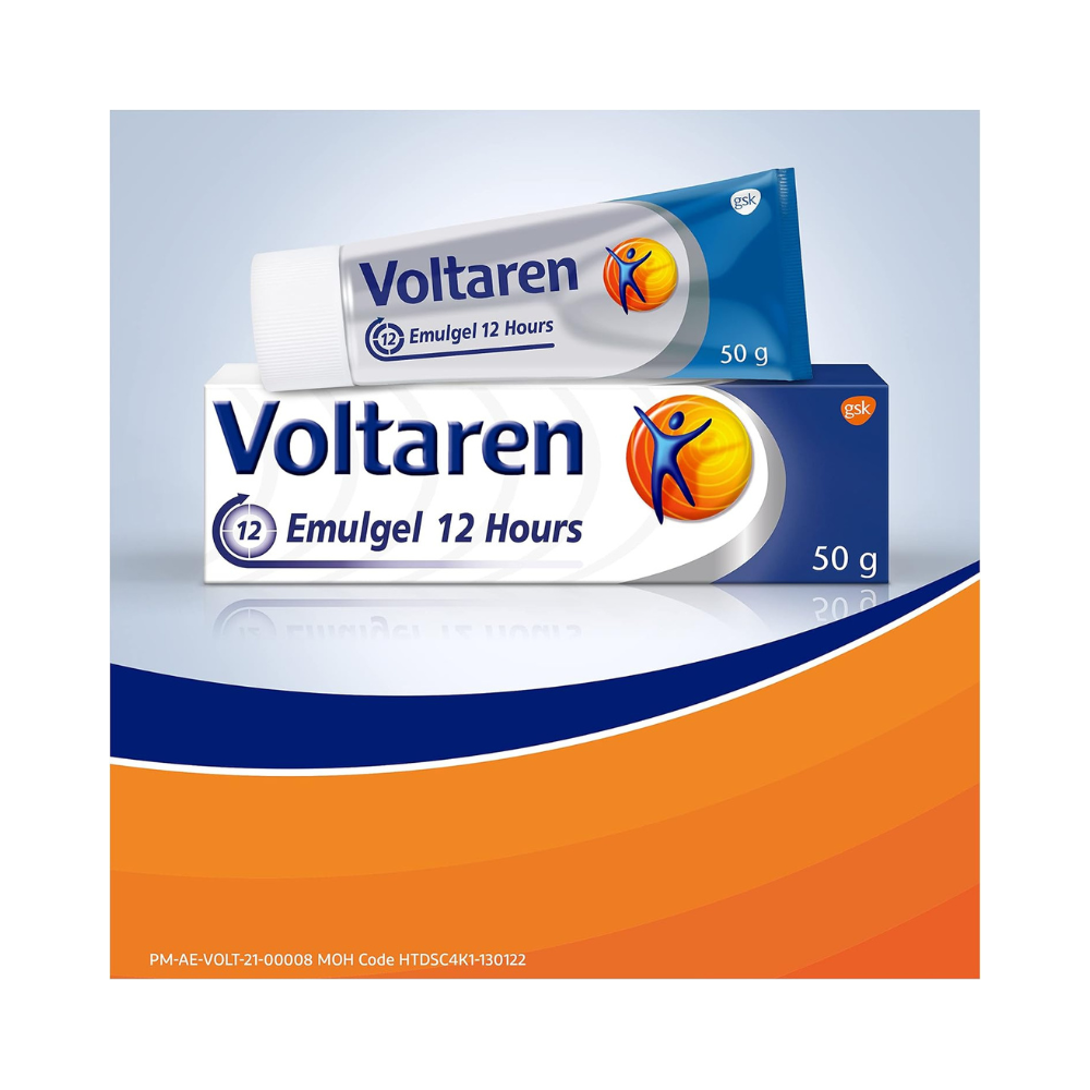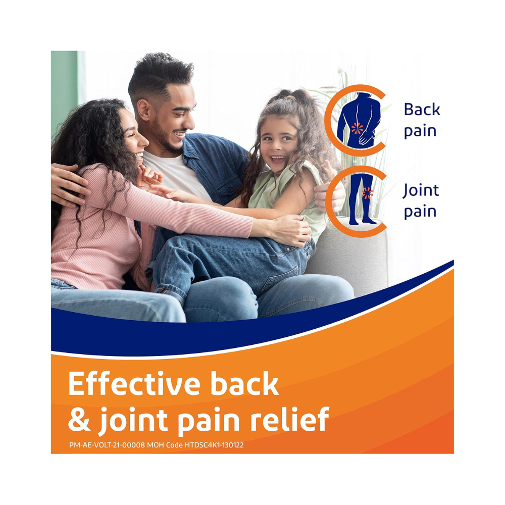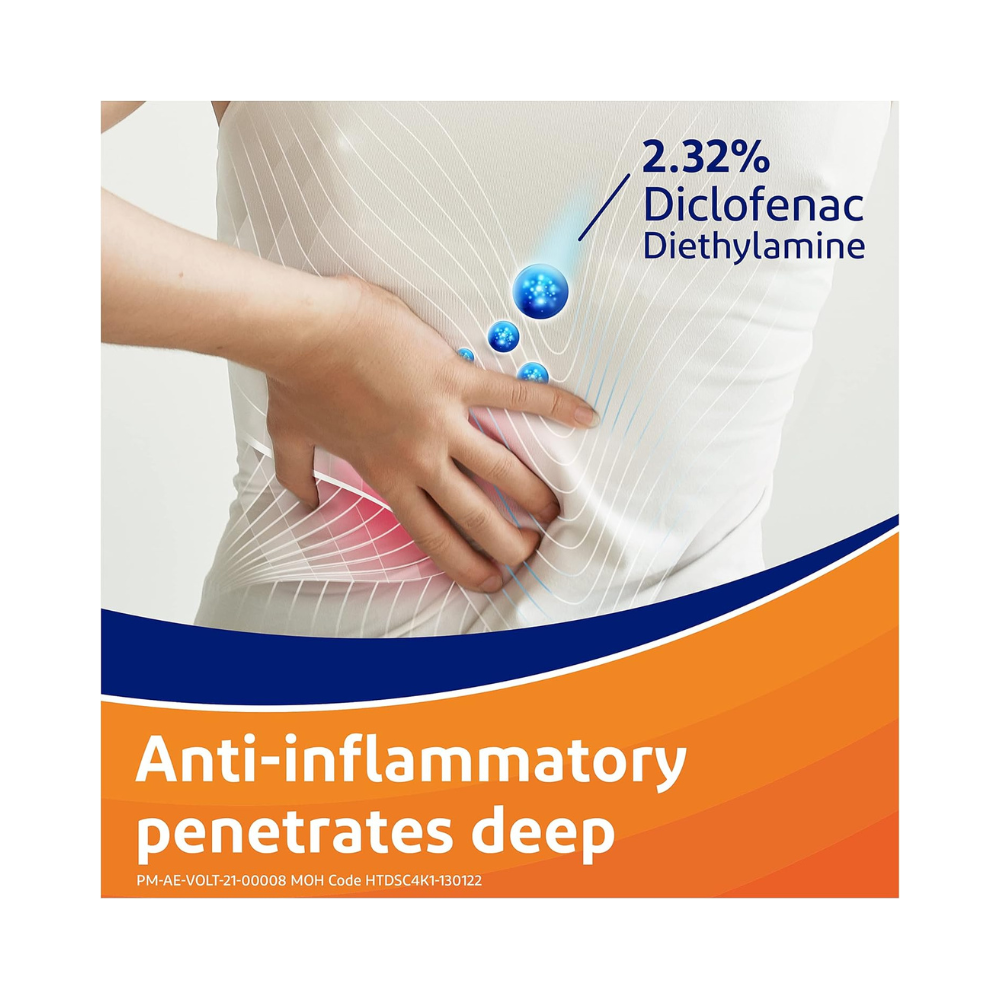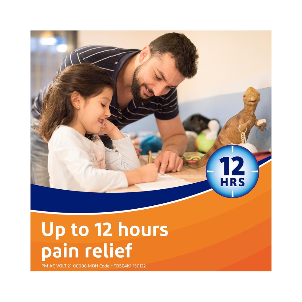 Voltaren Emulgel 12 Hours Diclofenac Gel is designed to provide effective relief from pain, inflammation, and swelling associated with muscle and joint injuries, soft-tissue rheumatism (such as tendonitis), and mild arthritis in the knee or fingers. Voltaren 12H Emulgel topical diclofenac gel contains diclofenac diethylamine that can offer up to 12 hours of pain relief, thanks to its high concentration of diclofenac-double that of Voltaren Emulgel. Unlike cooling gels and heat patches, which only affect the skin’s surface, Voltaren Gel penetrates deeply to address pain and inflammation at the source. Voltaren gel combines the benefits of a cream and a hydrogel, facilitating deeper penetration into the skin and providing prolonged pain relief by targeting the underlying tissues. Emulgel technology used in Voltaren 12H Gel helps the active ingredient diclofenac to penetrate deeply into the skin and reach the site of the pain and swelling. Regular application forms a reservoir of the active ingredient, ensuring continuous relief throughout the day. Apply the diclofenac gel twice daily to the affected area to manage pain from strains, sprains, bruises, backaches, and localized soft-tissue rheumatism, as well as non-serious arthritis. Each gram of Voltaren 12H Gel contains 23.2 mg of diclofenac diethylamine (2.32%).